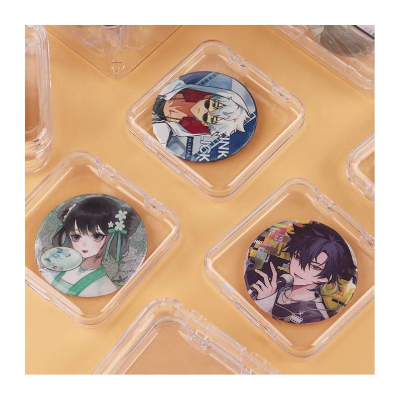 Pidä rakkaat pinssisi turvassa! Akryylisen pinssikotelon avulla saat laitettua suosikki pinssisi esille esimerkiksi hyllylle tai työpöydälle. Kiinnitä koteloon vaikka magneetti, ja voit laittaa pinssin koteloineen esille jääkaapin oveen! Rasia on kooltaan 75mm. Pieni kotelo sopii myös muuhun säilytykseen.