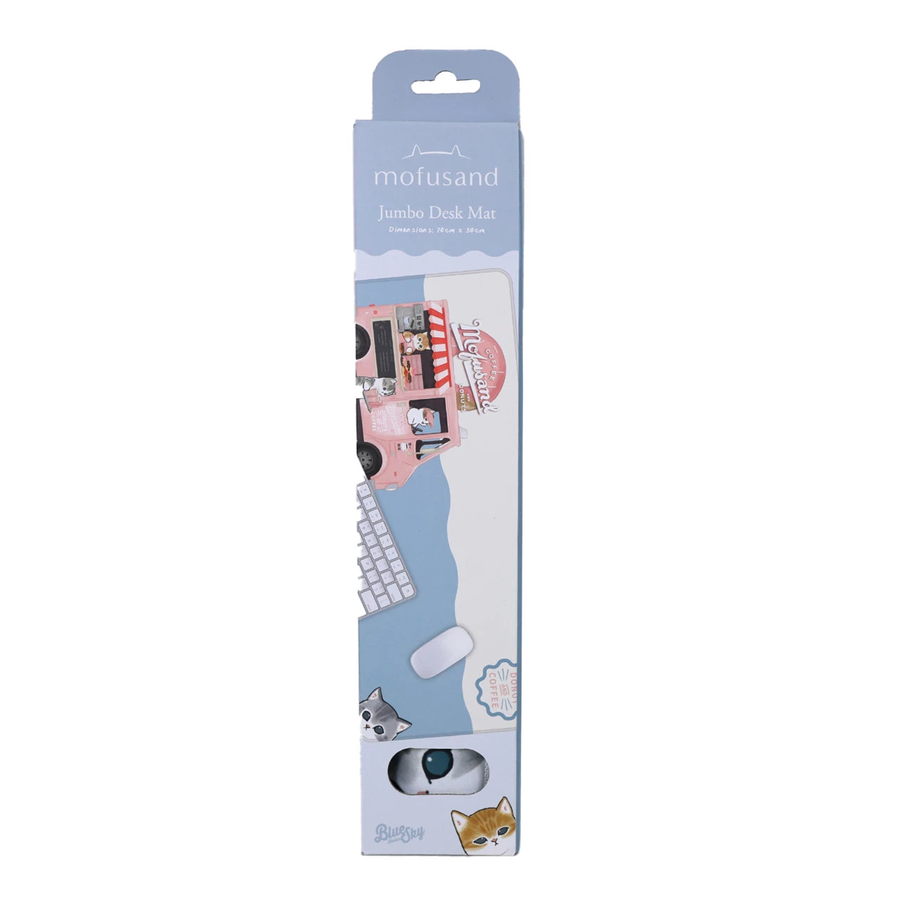 Brighten your workspace with the Mofusand Jumbo Desk Mat, featuring adorable coffee & donut-themed kitty illustrations. With a spacious 70×30cm size, soft polyester surface, non-slip rubber backing, and easy-clean design, it's perfect for any Mofusand fan's desk.